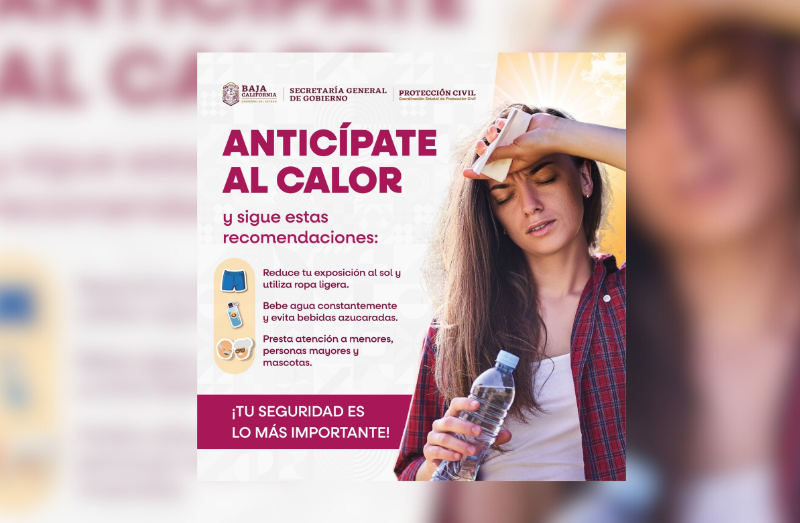 Tijuana BC 13 de marzo de 2026.-La Coordinación Estatal de Protección Civil (CEPC) con base en información del Servicio Meteorológico Nacional (SMN), exhorta a la ciudadanía a tomar precauciones ante las altas temperaturas que se preven en la entidad durante este viernes 13 de marzo.